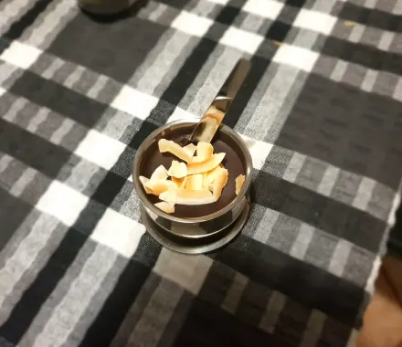 • Shake can of coconut cream thoroughly and add to melted chocolate and mix to combine.